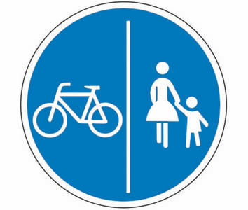 Verkehrszeichen VZ 241-30 - Getrennter Rad-u.Fußweg, Radweg links, Ø=600 mm, Folie RA1, Alu 2mm, RAL